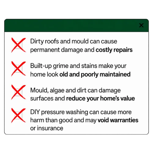 Your home might just need a clean now… but leave it too long, and you’re dealing with long-term damage instead of a simple wash.